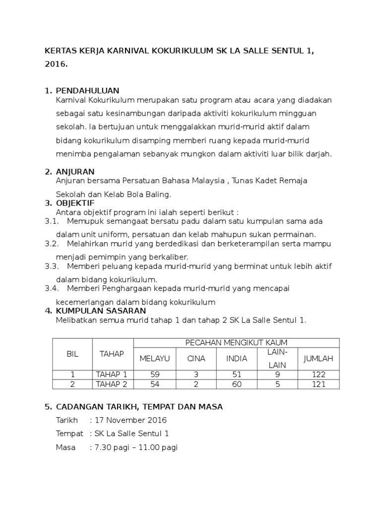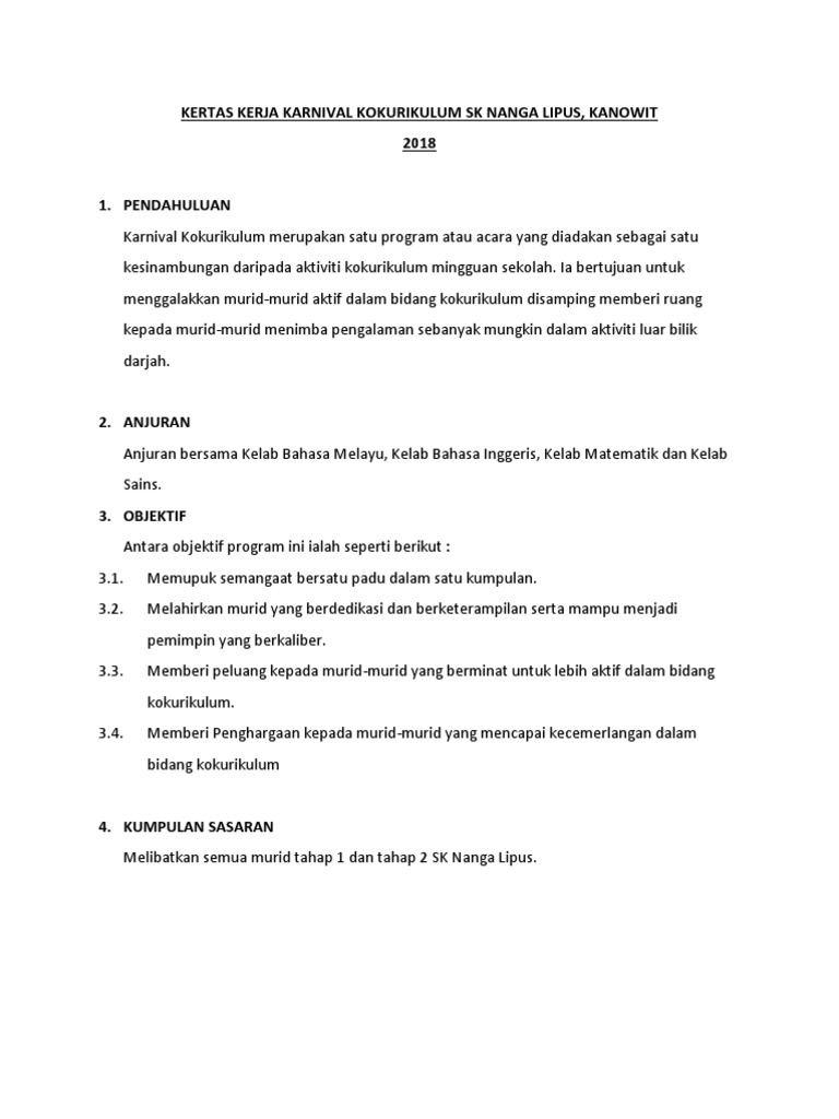 Kertas Kerja Karnival Kokurikulum Smk Muhibbah 2017 Pdf
