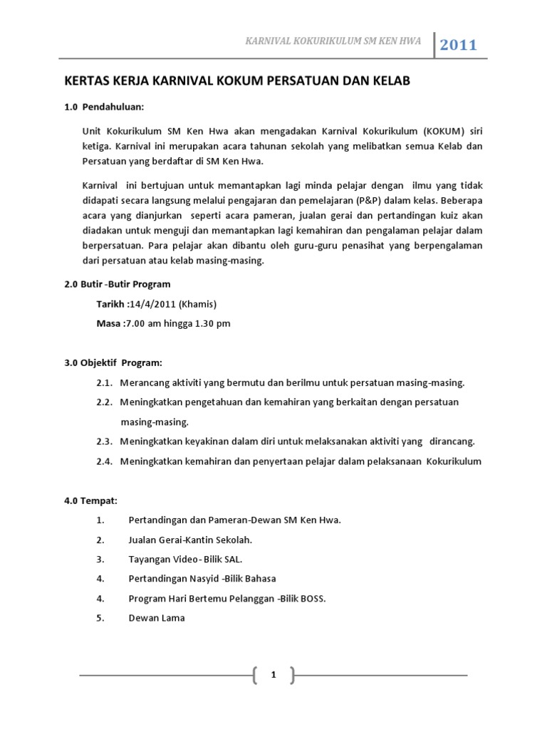 Kertas Kerja Karnival Kokum Persatuan Dan Kelab Pdf